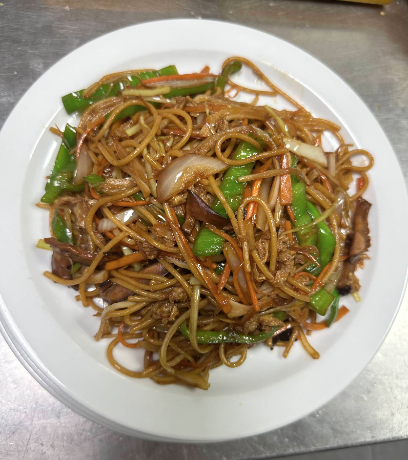 Arroces y tallarines: arroz frito tres delicias, arroz con gambas, tallarines con pollo o gambas.